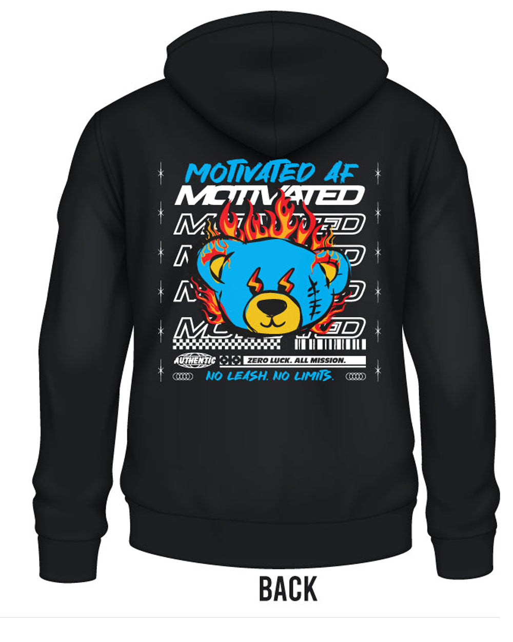 This isn’t just a hoodie—it’s a warning label. The Motivated AF Bear Hoodie is built for people who refuse to play tame. With a savage bear graphic up front and a full-blown inferno on the back, this drop screams zero luck, all mission.
